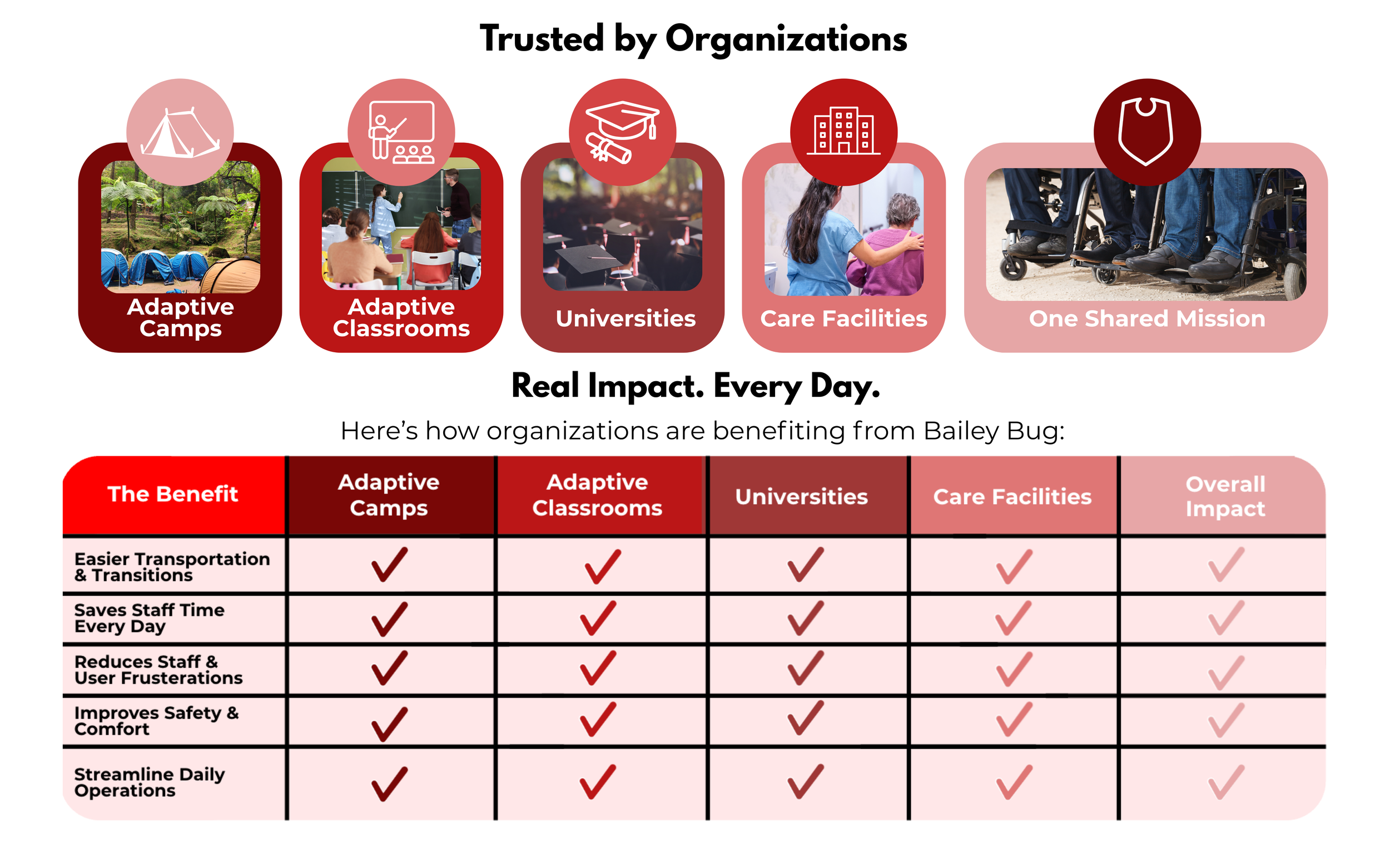 Bailey Bug coats eliminate the daily struggle of dressing wheelchair residents for outdoor transitions: Saving staff time, reducing frustration, and improving comfort.