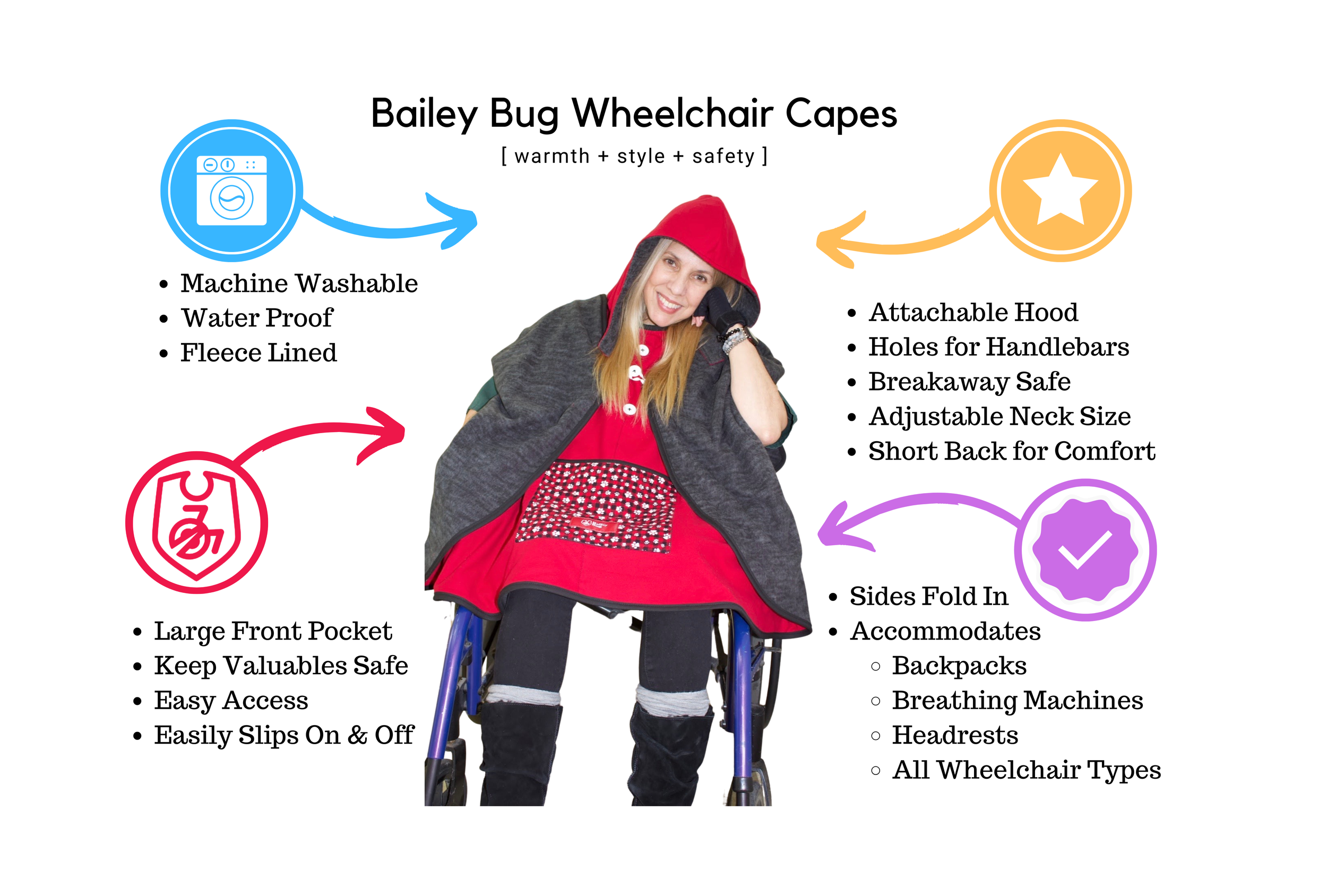 Bailey Bug wheelchair coats make it easier and safer for residents' transportation needs, all while keeping them warm, safe, and stylish!